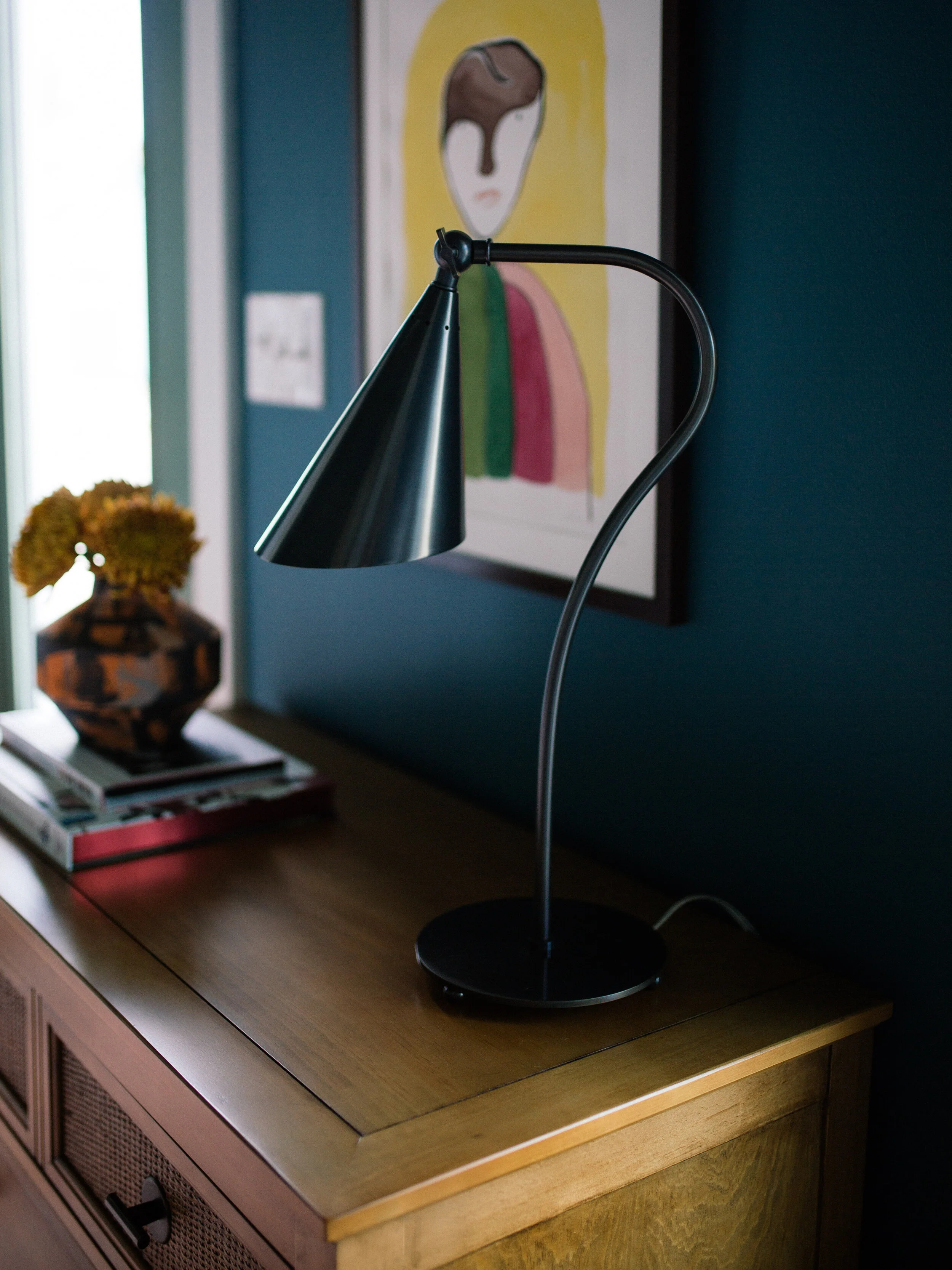 But as always, I wanted to include some elements of modernity, like the black table lamp which adds some sleekness.